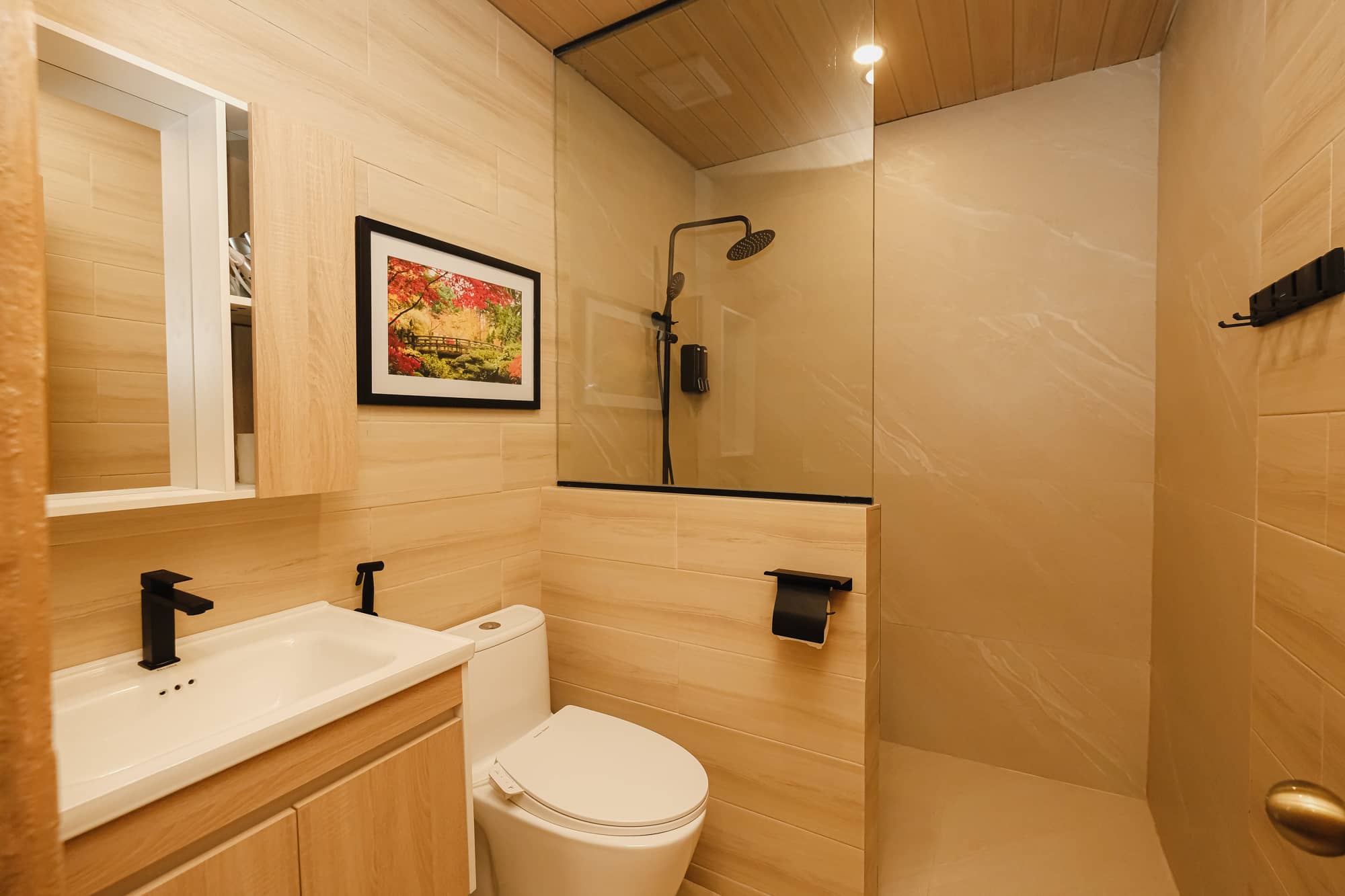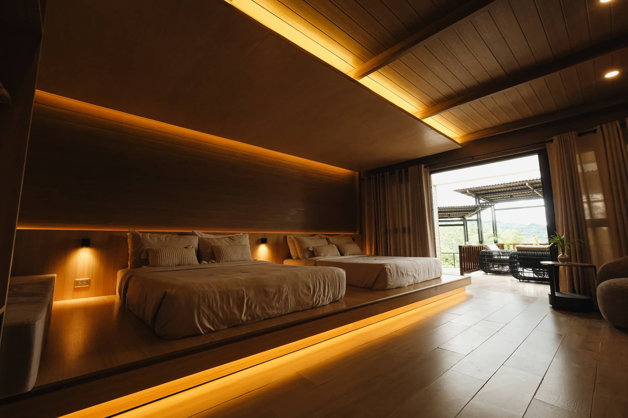 Peakway Cabin Suite has two (2) queen sized beds, a private bathroom, desk, chair, cabinet, television and a balcony.